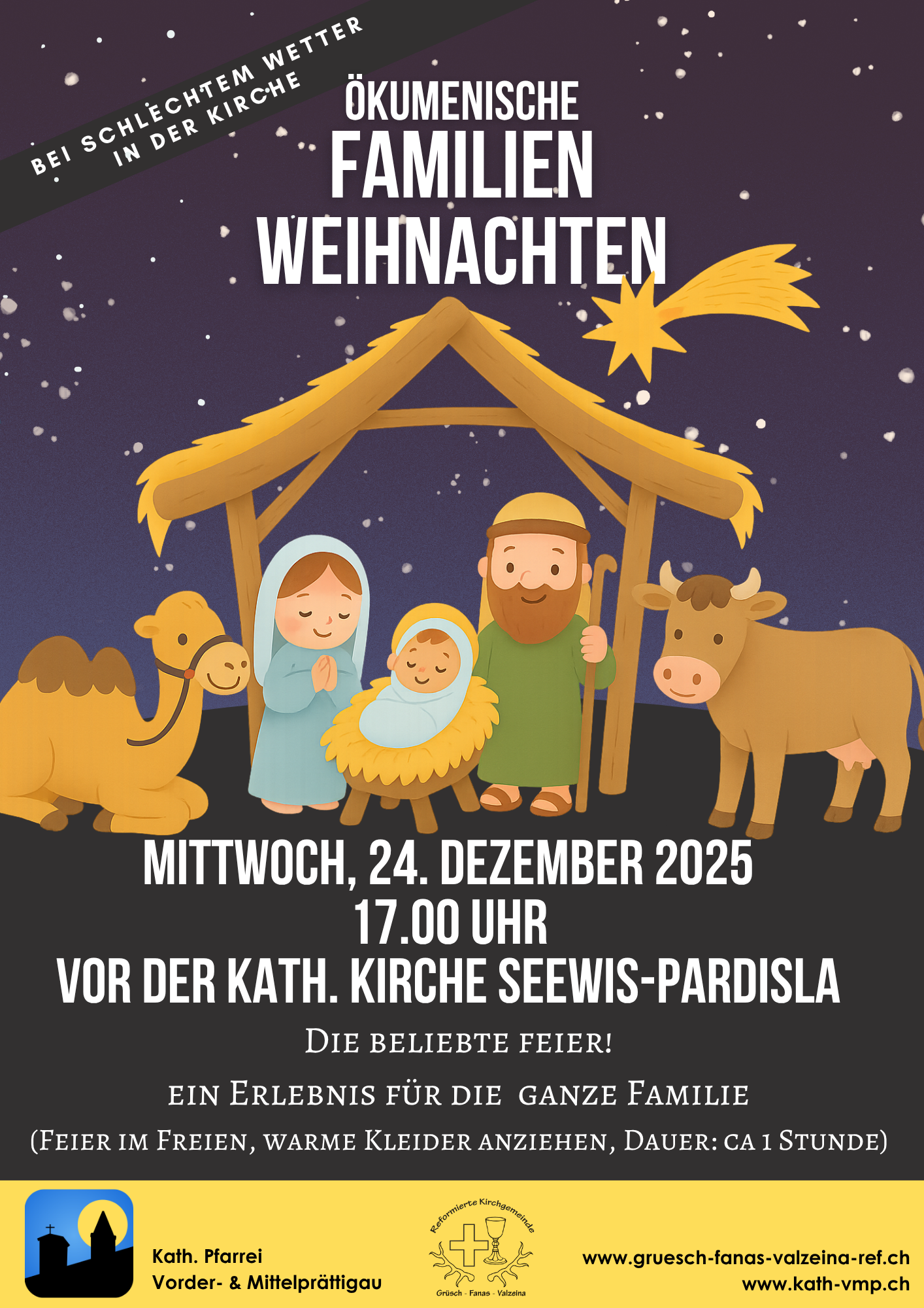 Mittwoch, 24. Dezember, 17 Uhr, kath. Kirche Seewis-Pardisla